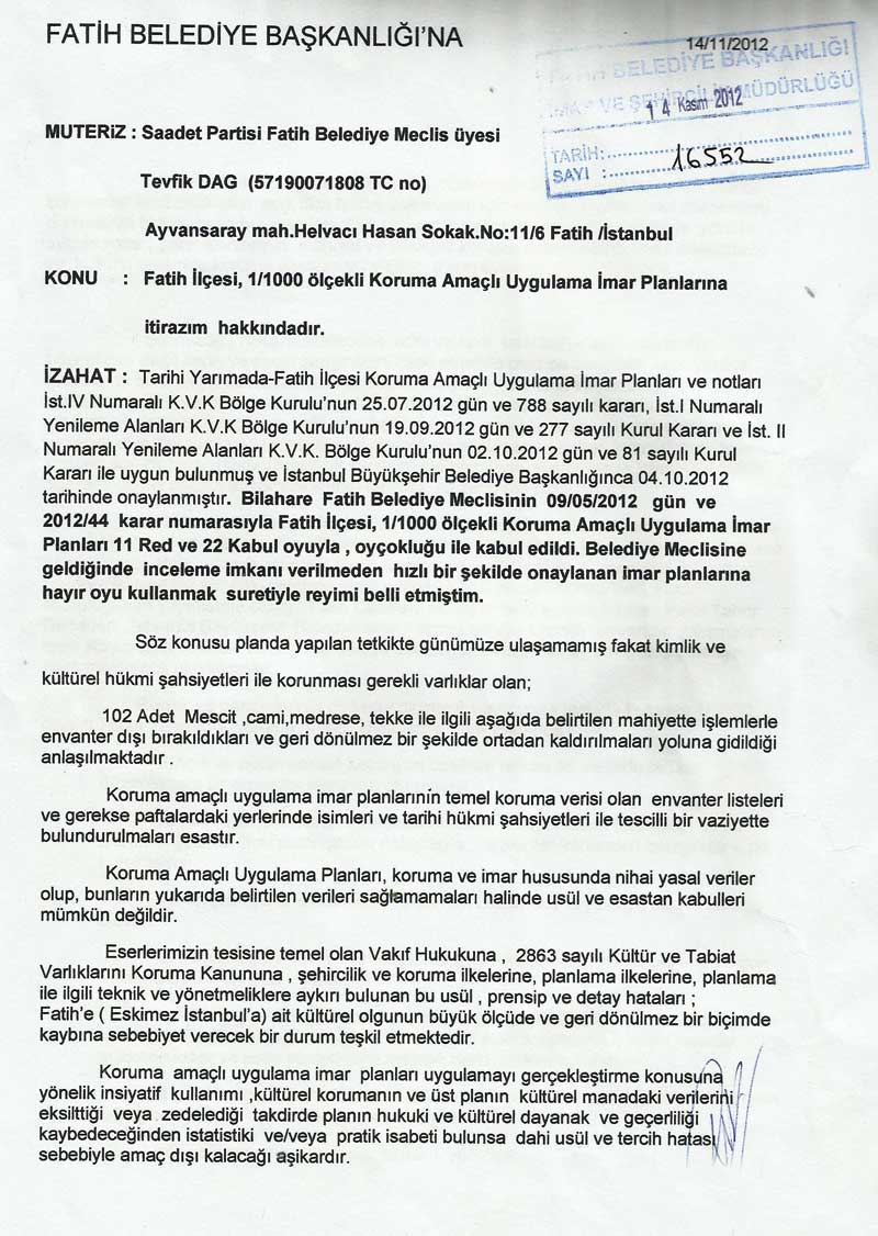 Saadet Partisi Meclis Üyesi Av. Tevfik Dağ Fatih 1/1000'lik