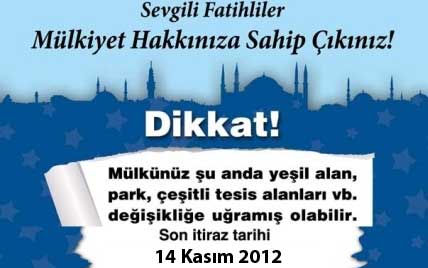 imar planlarına son itiraz tarihi 14 Kasım 2012 saat 17.00 ye kadar