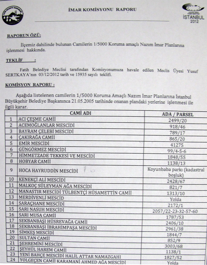 Fatih Belediye Meclisi, 2011 yılında hazırlanan planda