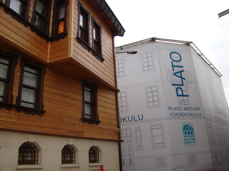 Sağ taraftaki bina Platonun daha evvelce yaptığı uygulama bina, şimdi sol