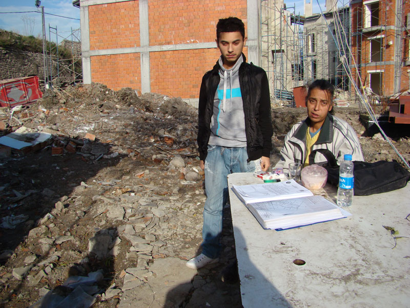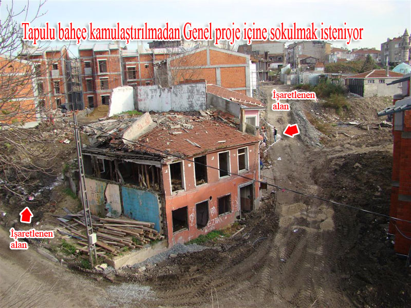 arka bahçesinin, inşaatı sürdüren TOKİ yetkilileri ve Fatih