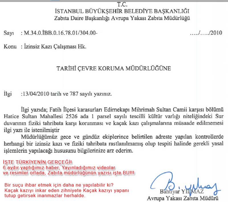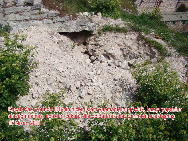 inşaatından da açıkça görülen kaçak kazıda tarihi surlar