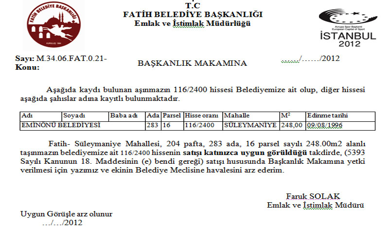 Fatih belediye meclisi SP üyesi Av. Tevfik Dağ konu hakkında