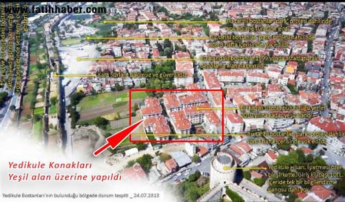 Bu hükme göre, ilgili plan notu ile “Tarihi Yedikule Bostanları” yarımada içerisinde planlanmış diğer tüm park ve dinlenme alanlarından ayrı tutulmuştur. Bölgedeki tarım alanları Koruma Amaçlı Nazım İmar Planı ile net bir şekilde koruma altına alınmıştır. Dolayısıyla, kent içi yerleşik alanındaki tüm imar uygulamalarını ve inşaat faaliyetlerini bağlayıcı hukuki kaynağı olan imar planları ile koruma altına alınmış Yedikule Bostanları üzerinde, Fatih Belediyesi tarafından hazırlanan ve İBB tarafından uygulanmak üzere ihale edilmiş olan düzenlemeler plana aykırı olup, hukuk dışıdır.