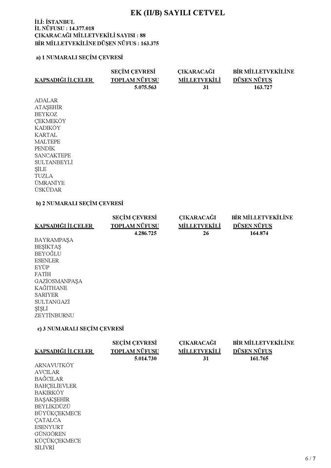 İSTANBUL SEÇİM ÇEVRESİ VE BÖLGELERE GÖRE DAĞILIMI... YÜKSEK SEÇİM KURULUNUN TEBLİĞİ..