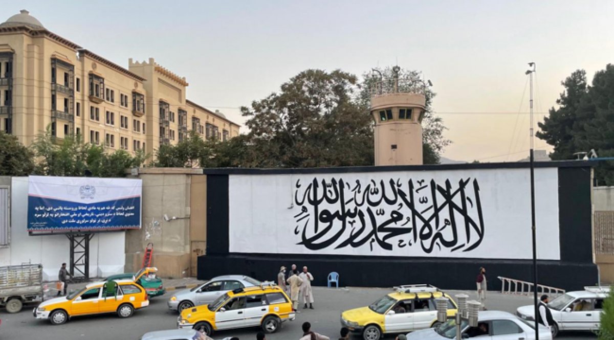 ABD ve Batı medyasındaki son manşet böyle atıldı; Afganistan'da kontrolü sağlayan Taliban, ABD'nin Kabil Büyükelçiliği'nin önündeki duvara hem kendi bayrağını hem de kuruluşunu ilan ettiği Afganistan İslam Emirliği'nin armasını çizdi.