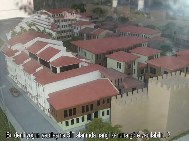 Proje alanındaki yapılaşma en vahşi şekilde gerçekleştirildi, Saçakların birbirine değdiği, Tarihi surlara yarım metreye kadar girildiği bir yapılaşmaya nasıl izin verdiler.