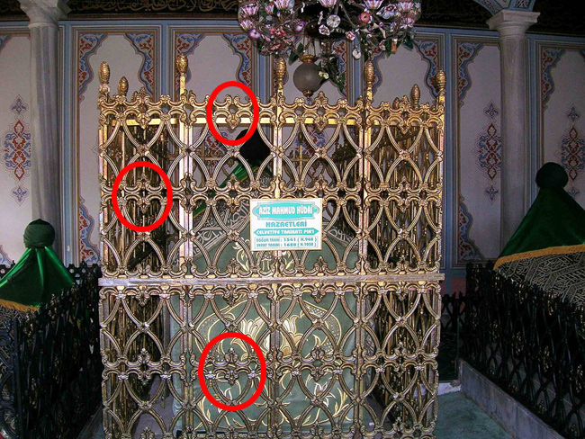 Camilerimizin ve türbelerimizin duvarlarında Halılarında Haç ve Altı köşeli Siyon yıldızı temalarına, Mason mabedi dekorlara artık her yerde karşılaşabiliyoruz, Şimdide karşımıza Sultanların sultanı Aziz Mahmut Huda-i hazretlerinin türbesinde çıktı