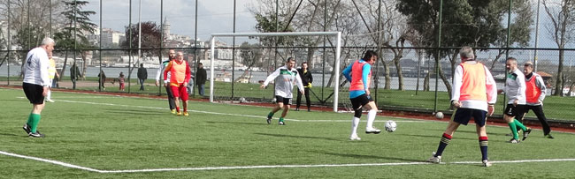 Balat İBB sosyal tesislerinde Haliçspor, Altınay, Yeşilova, Mollaşkı gibi kulüplerde top oynamış eski Balatlılar hafta sonrası buluşarak futbol sevdalarını yaniden yaşıyorlar.