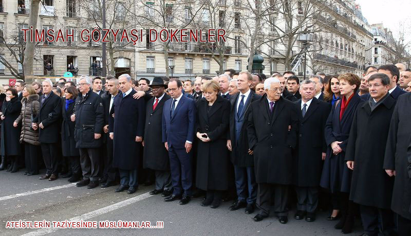 Allah'ın ve Resulullah'ın İkazlarına aldırmadan Parise gidip taziyede bulunan Başbakanımız Filistin Kasabı Netehyahu, Haması İsraile satan Abas ile aynı safta yer aldı.