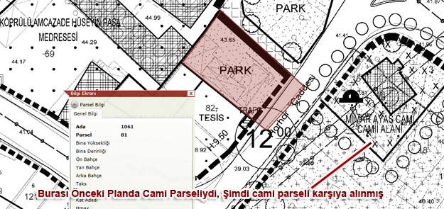 2012 PLANLARI ÖNCESİNDE 1/1000 ÖLÇEKLİ NAZIM İMAR PLANINDAKİ CAMİ KARŞI ADAYA UÇURULDU