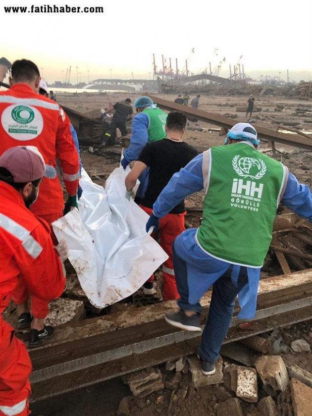 Beyrut Hava alanı ve liman bitişiğindeki sivil alanda gerçekleşen devasa patlama yüzlerce kişinin ölümüne yol açtı, onlarca binanın yerle bir olmasına sebep oldu, Halk Patlamaya İsrail füzeleri sebep oldu derken Patlamanın Amonyum Nitrat dolu bir geminin limanda patladığı açıklandı . İHH felaket bölgesine ulaşarak yardım çalışmalarına başladı. Amonyum nitrat Gübre ve füze yakıtı olarak kullanılıyor