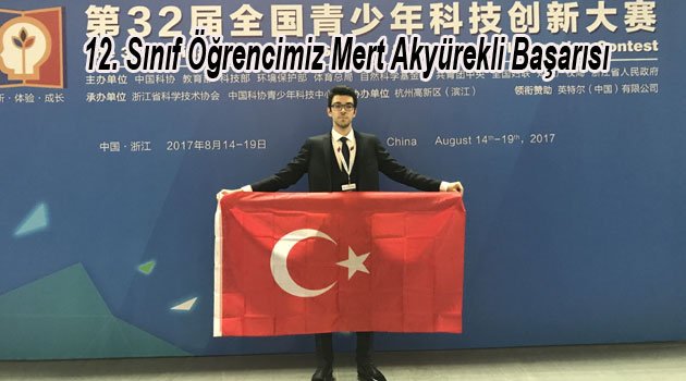 “12. Sınıf Öğrencimiz Mert Akyürekli, Çin’de Gerçekleştirilen “CASTIC – Uluslararası Proje Yarışması”nda  Dünya Birincisi Oldu..