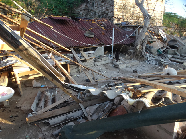 Öğleden sonra polis, zabıta, kepçe, kamyon hepsi bir arada geldi. Bizim beklediğimizin tersine Yedikule tarafından başlamaya kalktı yıkıma. Koşarak Yedikule tarafına geçtik. Yine evrak sorduk. "Karar var mı?" diyoruz. Polis zabıtaya, zabıta amirine, amir belediyeye yönlendiriyor. Belediye telefonlara cevap vermiyor. İstanbul arkeoloji müzesini arıyoruz, sorumlu birini göndereceklerini söylüyorlar oradan da ses yok.