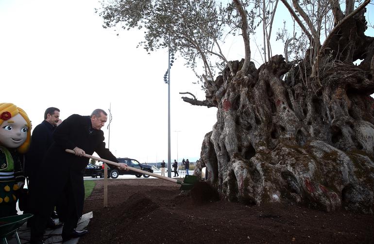 Bademli'de 1071 yılında dikilen ve Türkiye'nin en yaşlı zeytin ağacı olan çapı 2.55 metrelik zeytin ağacının dikimine dikimine katılan Cumhurbaşkanı Erdoğan, şunları söyledi: