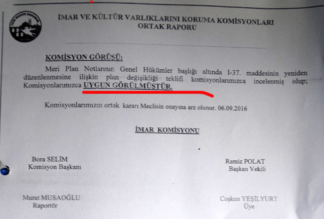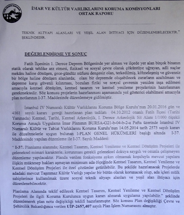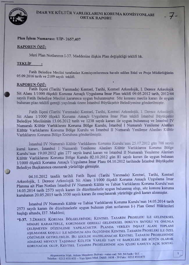08/09/2016 Çarşamba günü Fatih belediye meclisne getirilip OY ÇOKLUĞU İLE kabul edilen (Fatih ilçesi 1/1000 ölçekli nazım imar planı, plan notları  I-37. maddesi) değiştirildi.