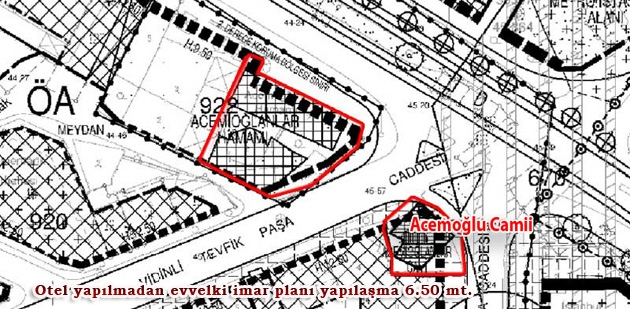 Uç taraftaki Acemoğlu hamamı korunması gerekiyordu, ve hamamın bitişiğindeki yapılaşma hamamdan yüksek olmamalıydı..