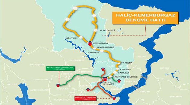 Yaklaşık 100 yıl önce Haliç’in kıyısındaki Silahtarağa elektrik santralına kömür taşımak üzere kurulan dekovil hattı, Toplu taşıma ve turistik gezi için yapılacak 25 kilometrelik Haliç-Kemerburgaz Dekovil Hattı’da 13 istasyonu bulunuyor.