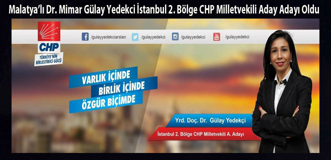 Tasarladığı projelerle adından sıkça söz ettirecek gibi gözüken Yeni Yüzyıl Üniversitesi Mimarlık Bölümü Başkanı görevini yürüten Yüksek Mimar olan Yrd. Doç. Dr. Gülay Yedekçi İstanbul 2’nci Bölge’den CHP’den Milletvekili aday adayı oldu.
