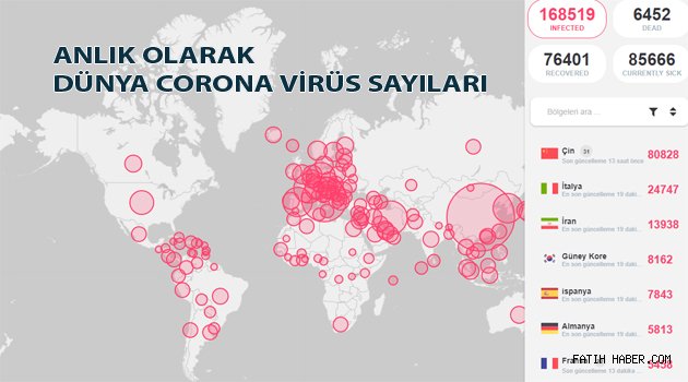 İşte, anlık ve canlı Corona virüsü haritası bilgileri ve istatistikleri.