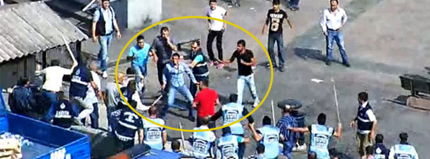 Palayı ardı ardına sallayan saldırgan, diğer zabıta ekiplerinin yardımıyla etkisiz hale getirilmeye çalışılıyor. Bu sırada diğer seyyar satıcılar da ellerine geçirdiklerini zabıtaya atıyor. Bazı seyyar satıcıları süpürge ve sopa, bazıları ise taburelerle zabıta ekiplerine saldırıyor. Gitgide şiddetini arttıran saldırı karşısında zabıta ekipleri kaçarak canlarını kurtarmaya çalışıyor. Zabıta arabalarına binerek uzaklaşmaya çalışan ekiplere saldırılar devam ediyor. Bu sırada küçük bir çocuğun da zabıta ekiplerine sopayla saldırdığı görülüyor.