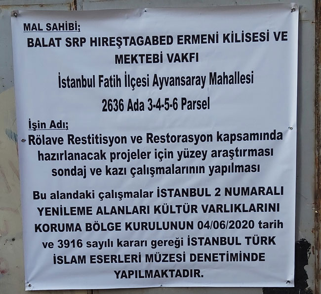 Balat Surp Hıreşdagabet Ermeni Kilisesi Khorenyan Mektebi ve Mezarlığı Vakfı İkinci Başkanı Aram Kuran, “ Özel bir işletmeye tarihi binayı 18 yıllığına kiraladık. Restore ederek, otel yapmak istiyorlar.