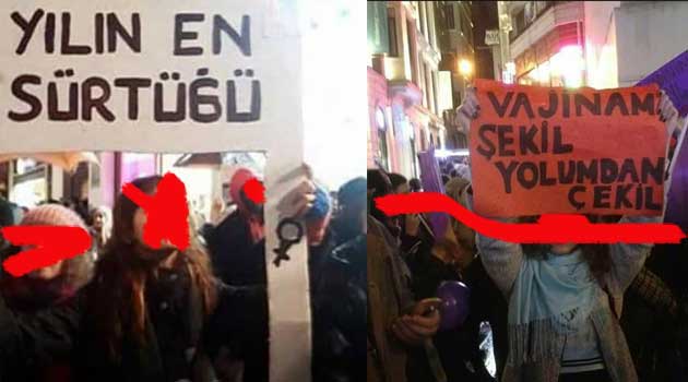 GAY ve LEZBİYEN gösteriye döndü. Sloganları "LİLİTH'İN SÜRTÜ*leriyiz", "Dolapta zıkkımın kökü,
