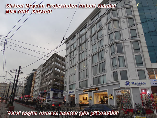 Bu arada el altında Eminönü, Sirkeci yayalaştırma projesini öğrenenler meydana cepheli binaları kaptı ve hızla otelleştirmeye devam ediyorlar.