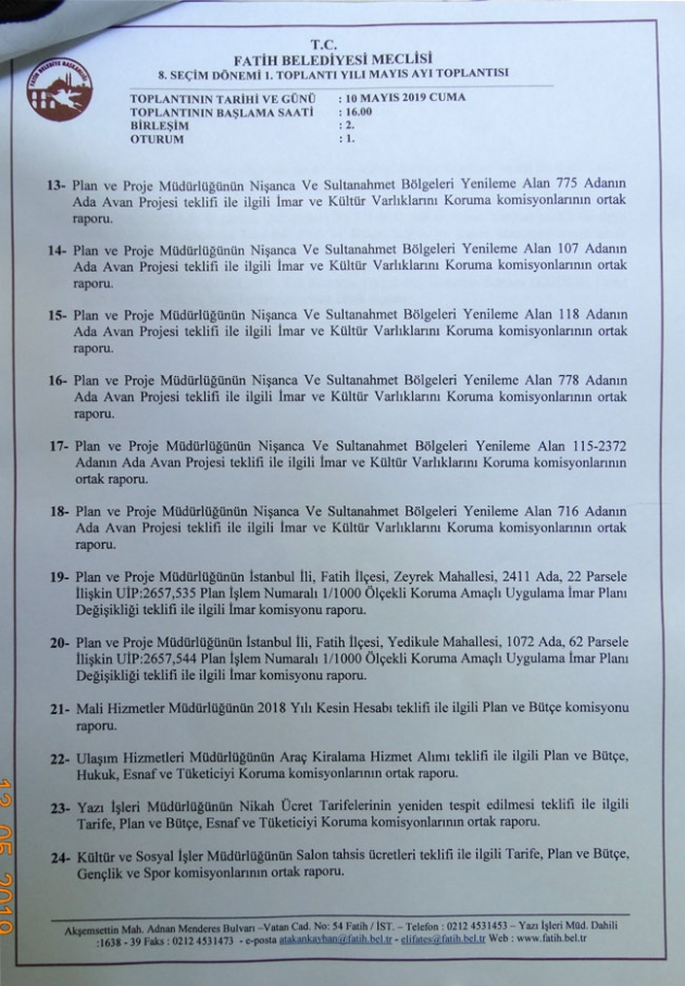 Bizim kaygımız 2012 yılında değiştirilen Fatih 1/1000 ölçekli nazım imar planını 7 yıldır her oturumda ağırlıklı olarak imar konulu maddeler getirilerek adeta imar planları sürekli değiştirilir hale geldi.