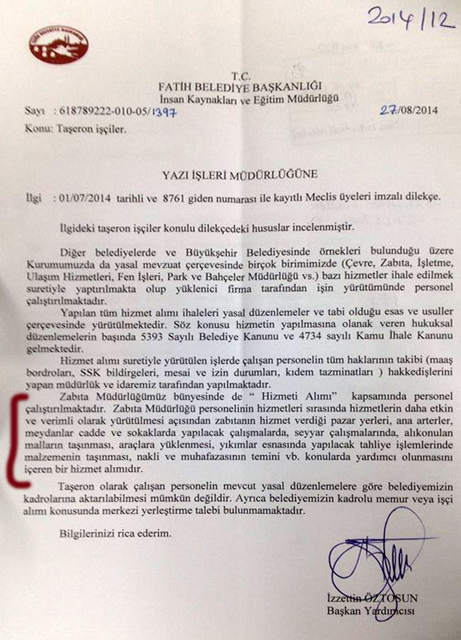 Fatih belediyesi sivil taşarön pesoneli memur olarak çalıştırıyormu?