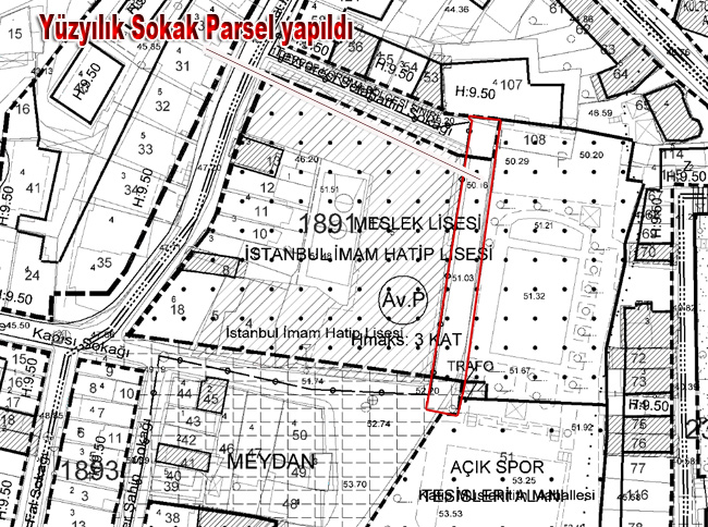 Bizler Gayrimüslimin arsasına izinsiz yapılan camiyi yıkan bir neslin ümmetiyiz, Asırlardır halkın kullanımında olan bir sokak Sırf Cumhurbaşkanımızın mezun olduğu okul diye, Okul önünden geçen sokak, halkın kullanımına kapatlarak Fatih belediyesi ukdesinde parsel yapıldı, yapılan parsel İstanbul İmam Hatip Lisesine 30 yıllığına bedelsiz tahsis edildi.