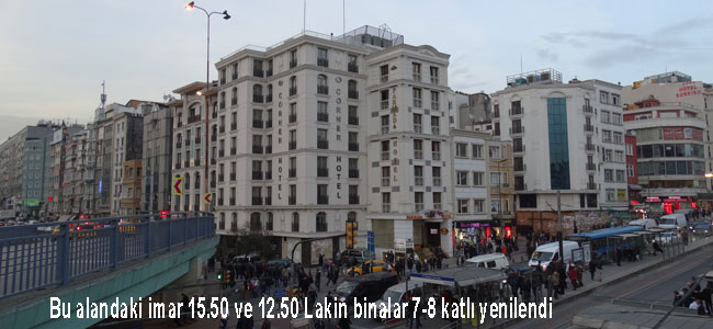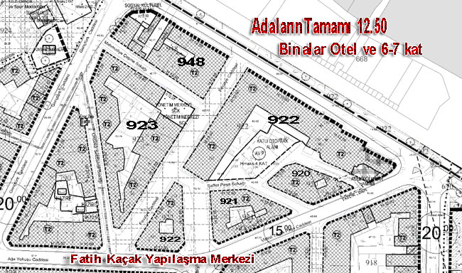 Bu alandaki 1/1000 ölçekli nazım imar planları 909-910 adaların cadde cepheleri H 15.50 iç sokalar H 12.50 yükesekilte olmasın rağmen, Son birkaç yıldır Güçlendirme, Hatta cephe yenileme adı altında Sıkı sıkıya çekilen perdelerin arkasından binalara kat atma, Toptan yenileme imalatları yapılmış olduğunu görüyoruz.
