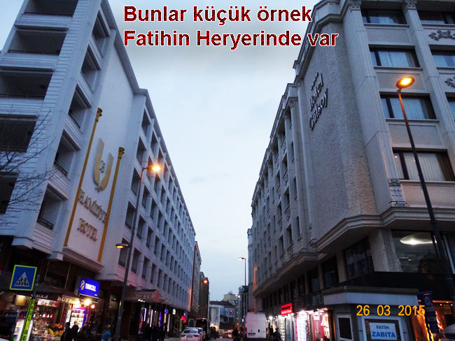 Bu kaçak katlı binalar Konut yada iş hanı olduğu halde Dönüştürüldüğünde Otel olarak hizmete giriyor, Bu Fonksiyon değişikliğinin olabilmesi için daha fazla bürokratik izin gerekirken, Hukuksuzluğu hayat nizamı yapmış Fatih belediyemiz biryerlerden aldığı "Dokulmazlık gücü" ile dilediği gibi davranmakta, Dilediğine hayatı zindan edip tek çivi çaktırmazken, Dilediğine keyfiyeten her istenilen uygulamayı görmezden geliyor.