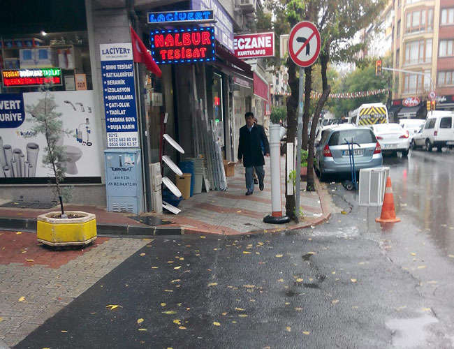 Bilhassa ana caddeler üzerindeki iş yerleri yolun otopark kısmına engeller koyuyor, kaldırımları ise ürünleri ile, masa sandalye ile işyerine çeviriyor.