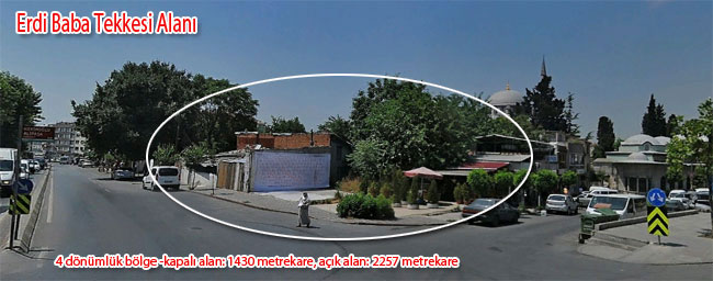 Erdi Baba Tekkesi (Abdal Yakup Tekkesi) eski Davutpaşa yeni Cerrahpaşa Mahallesi 1159 ada, 5 parselde bulunuyor. 4 dönümlük bölge -kapalı alan: 1430 metrekare, açık alan: 2257 metrekare-