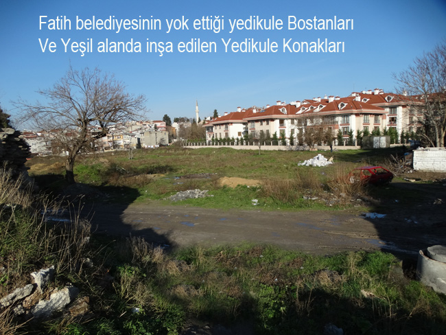 Söz konuşu yapılaşmayı Koruma Kurulu durdurmuş, Öngörülen projeyi iptal etmişti. Neticede “Yeşil alanda” hangi hukukla yapıldığını öğrenemediğimiz Yedikule Konaklarının ön görünümünü açan Yedikule bostanları yok edilmiş,