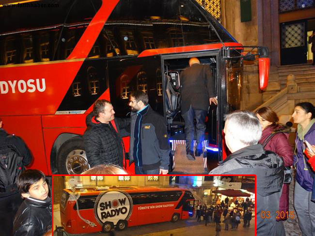 Bugün Eminönü İşbankası müzesinde açılan "Derinlerden Siperlere: Çanakkale 1915 sergisinin" tanıtımı için, Müze önünde, Show Radyo Yayın otobüsünden proğramını sundu.
