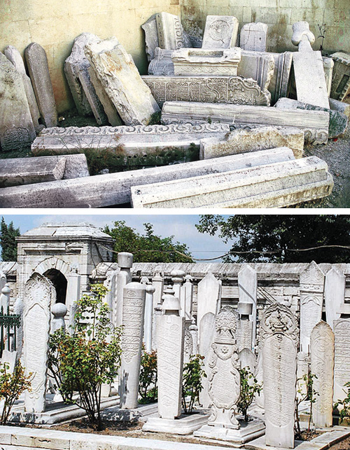 köşesine yığılmış kabir taşları