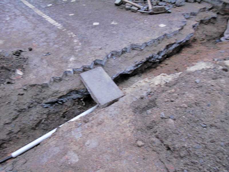 yerden kazarak yeni döşenmiş sokak be kaldırım döşemesini