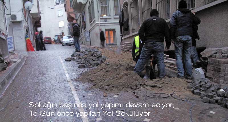 Sokak yenilenmesi henüz yeni bitmiş, Yol çalışması devamı sokağın