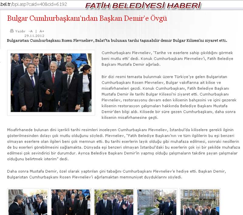 metninde Bulgar kilisesini İBB Başkanlığının onardığını,