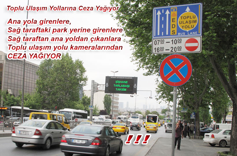 tahsis edilen sağ şeridi yalnızca İETT ve Halk otobüsü,