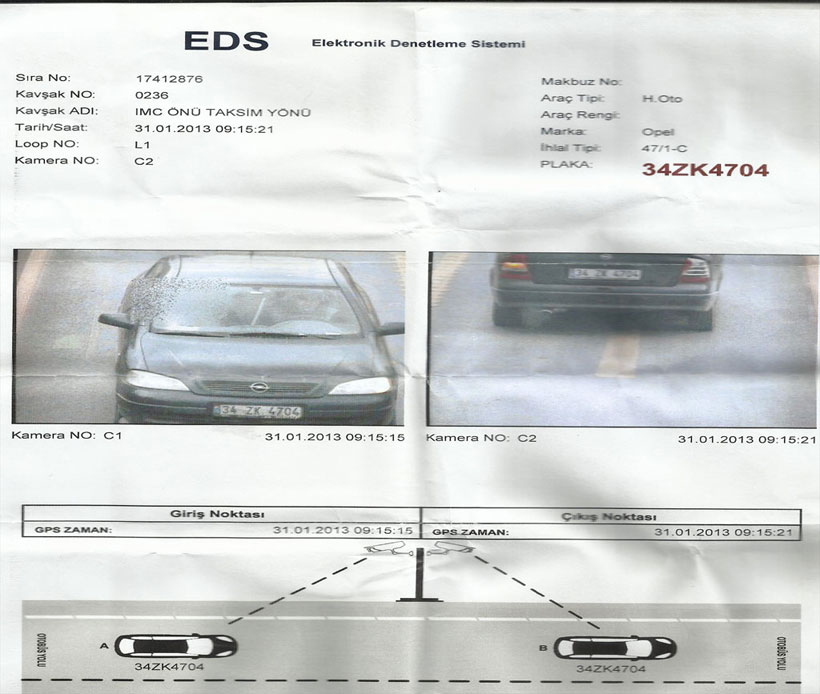 Denetleme Sistemi ile tespit edilerek 77.77 TL para cezası