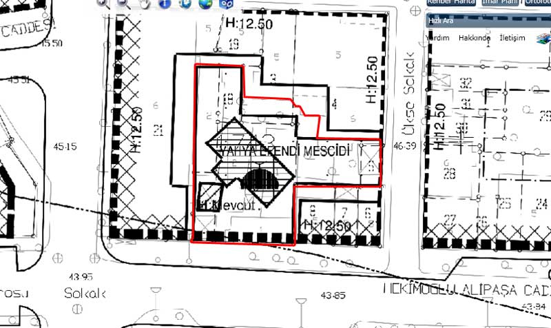 2012 1/1000 lik imar planlarında Yahya Efendi Mescidi