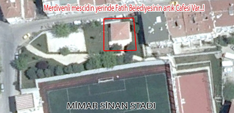 FATİHTE KAYBEDİLEN CAMİLERİMİZDEN BİRİ DAHA Merdivenli Mescit Merdivenli mescit artık yok Ada parseli dahi artık silinen 2712 ada içinde 285 parsele (mimar Sinan Stadı)dahil edilen bir mescidimiz
