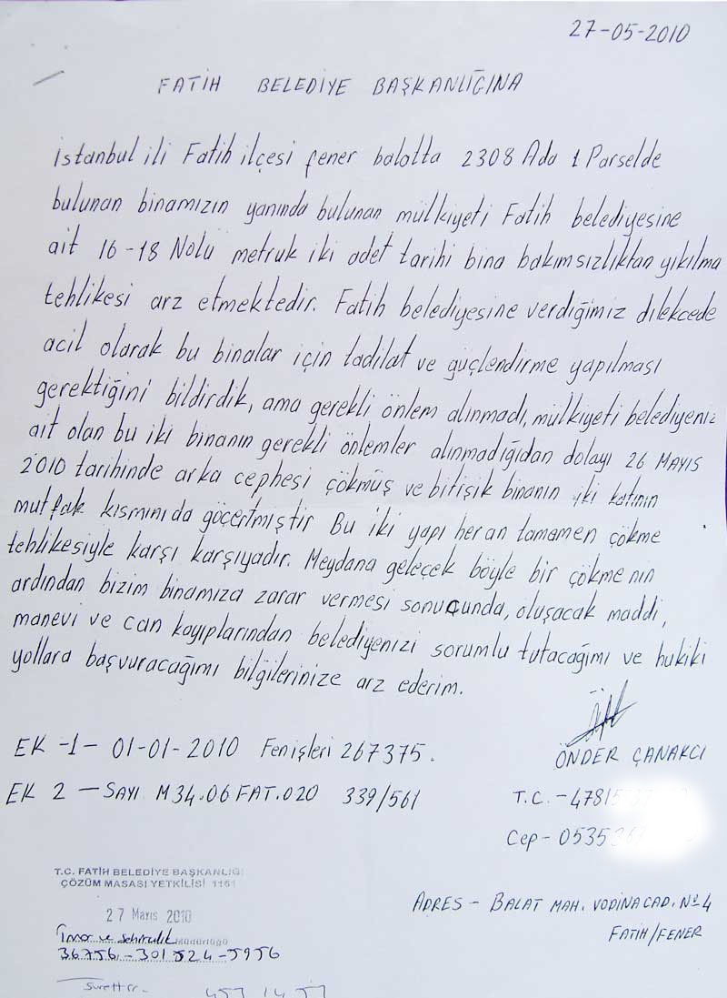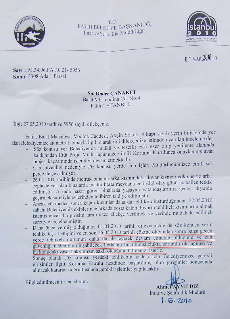 durumu bildirmesine kızan Fatih belediyesi imar müdürlüğü,