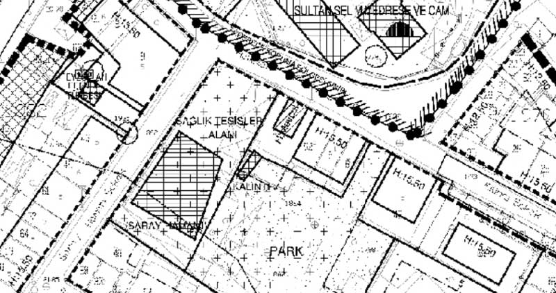 Yukarıdaki 2004 yılı imar planında tescilli eser sınıfındaki