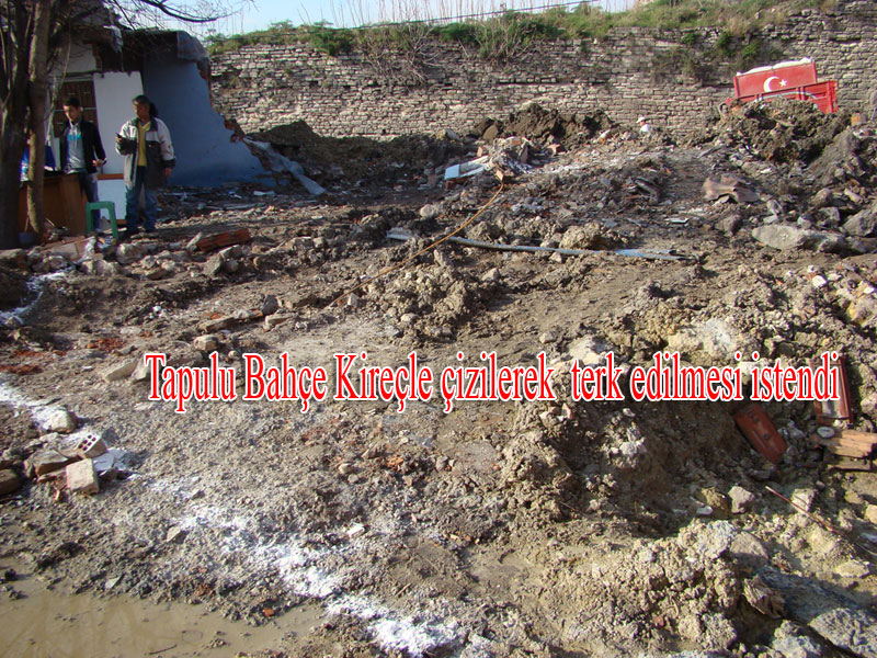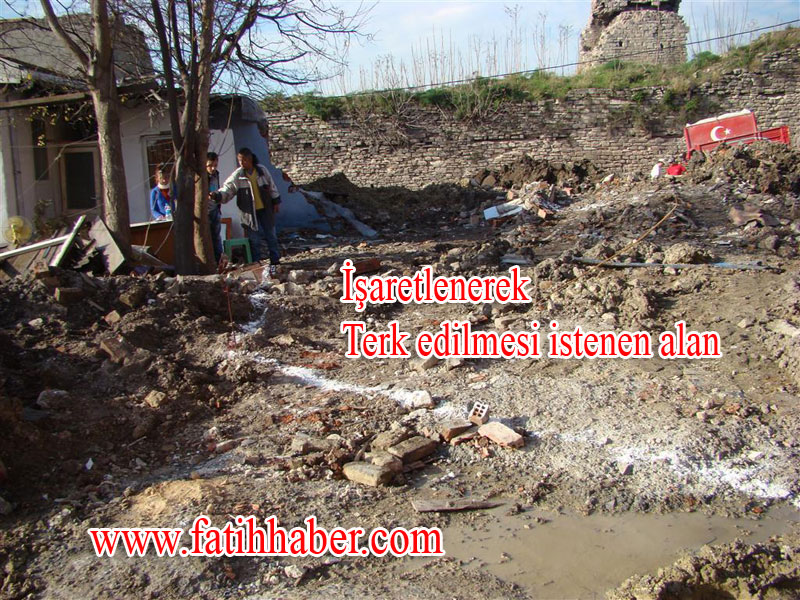 arka bahçesinin, inşaatı sürdüren TOKİ yetkilileri ve Fatih