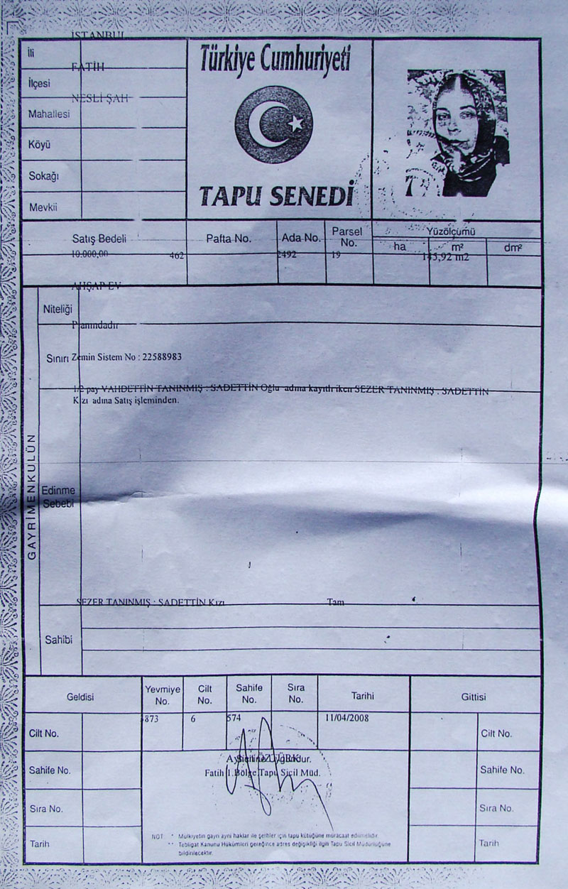 Aşağıdaki mevcut imar planında Sezer hanımın evinin tapulu bahçesi