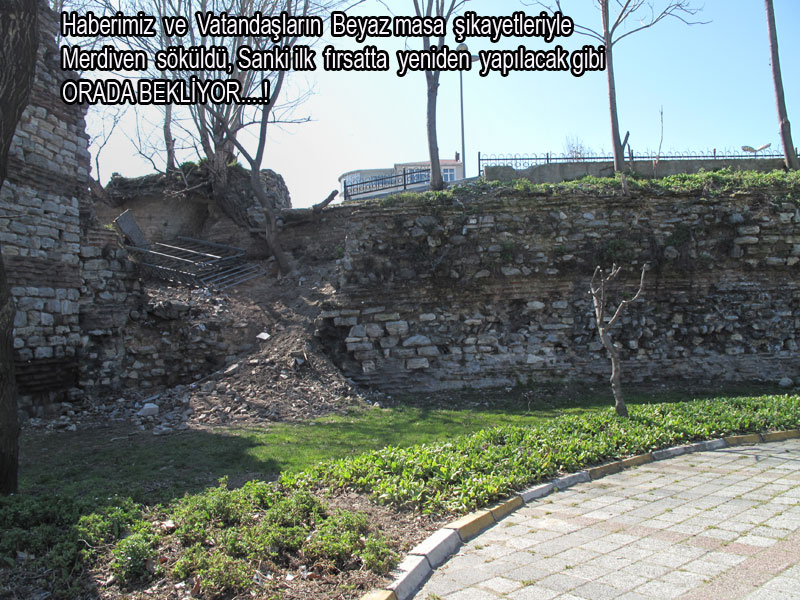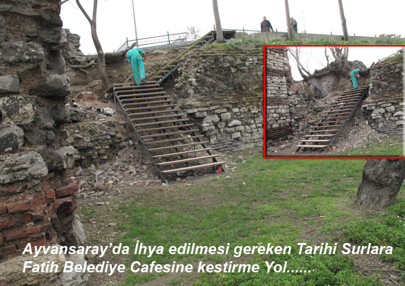 zaten tahrip olmuş sur kırıklarını genişleterek bir merdiven